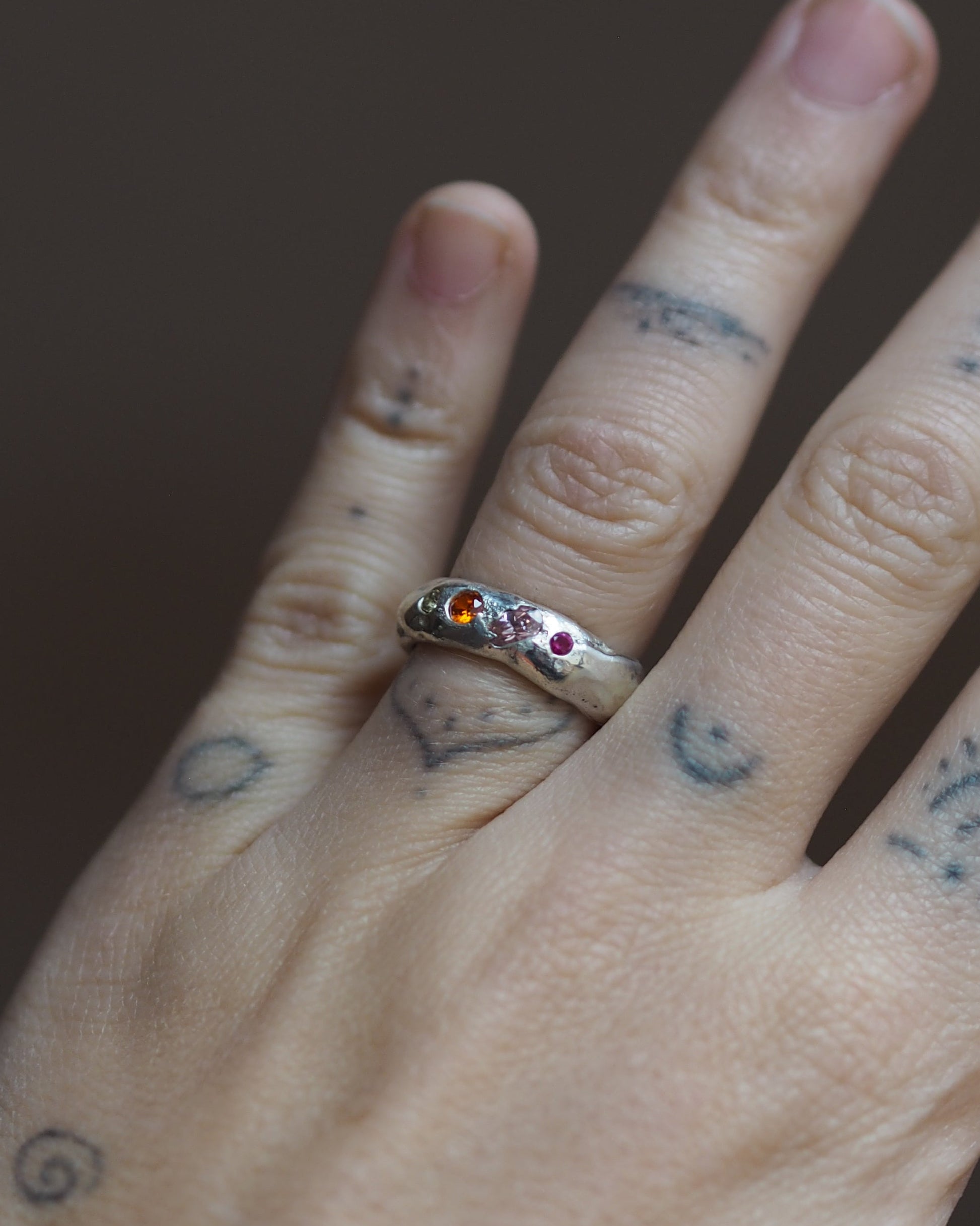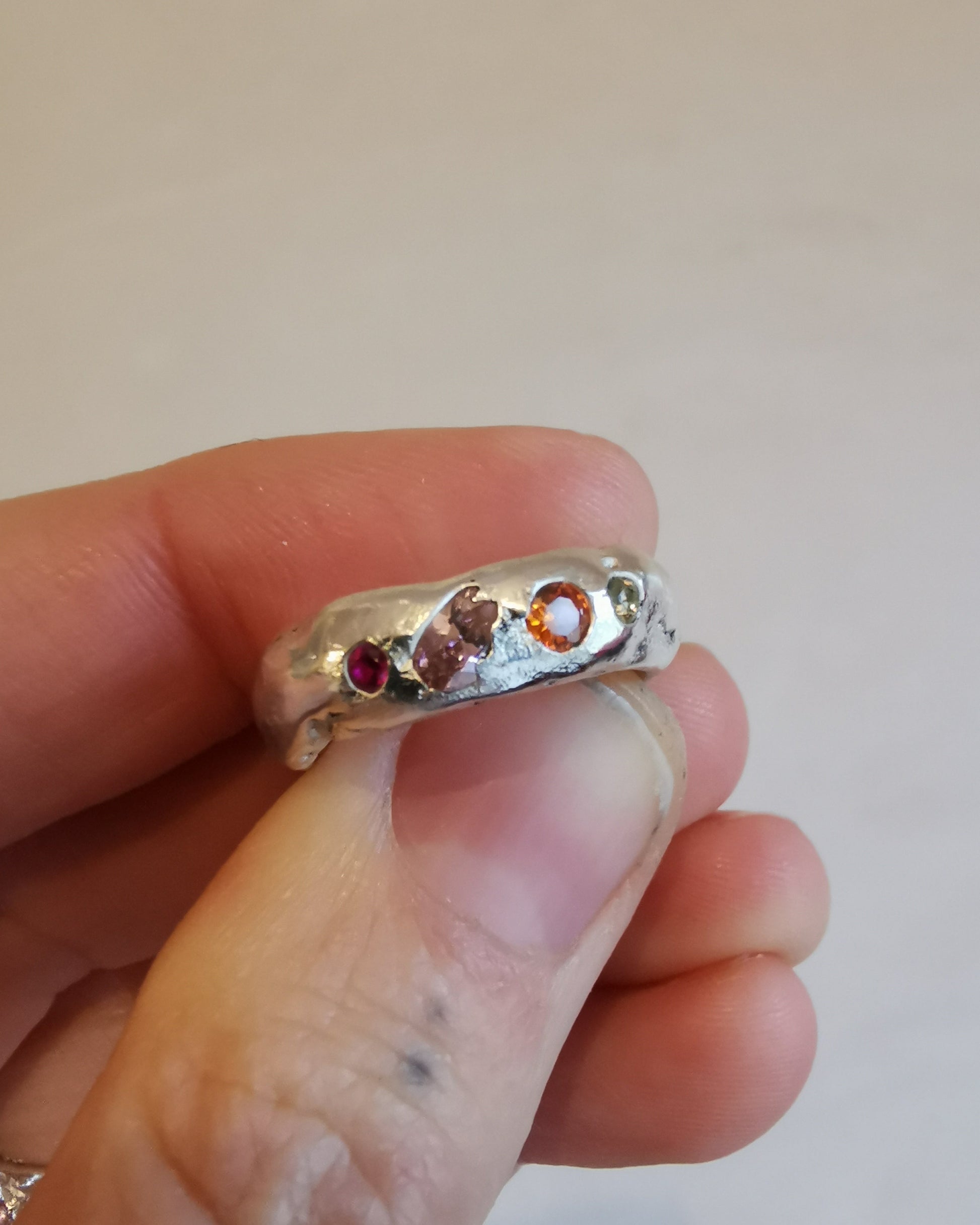 Shades of the sunset, cubic zirconias set in a sterling silver chunky band