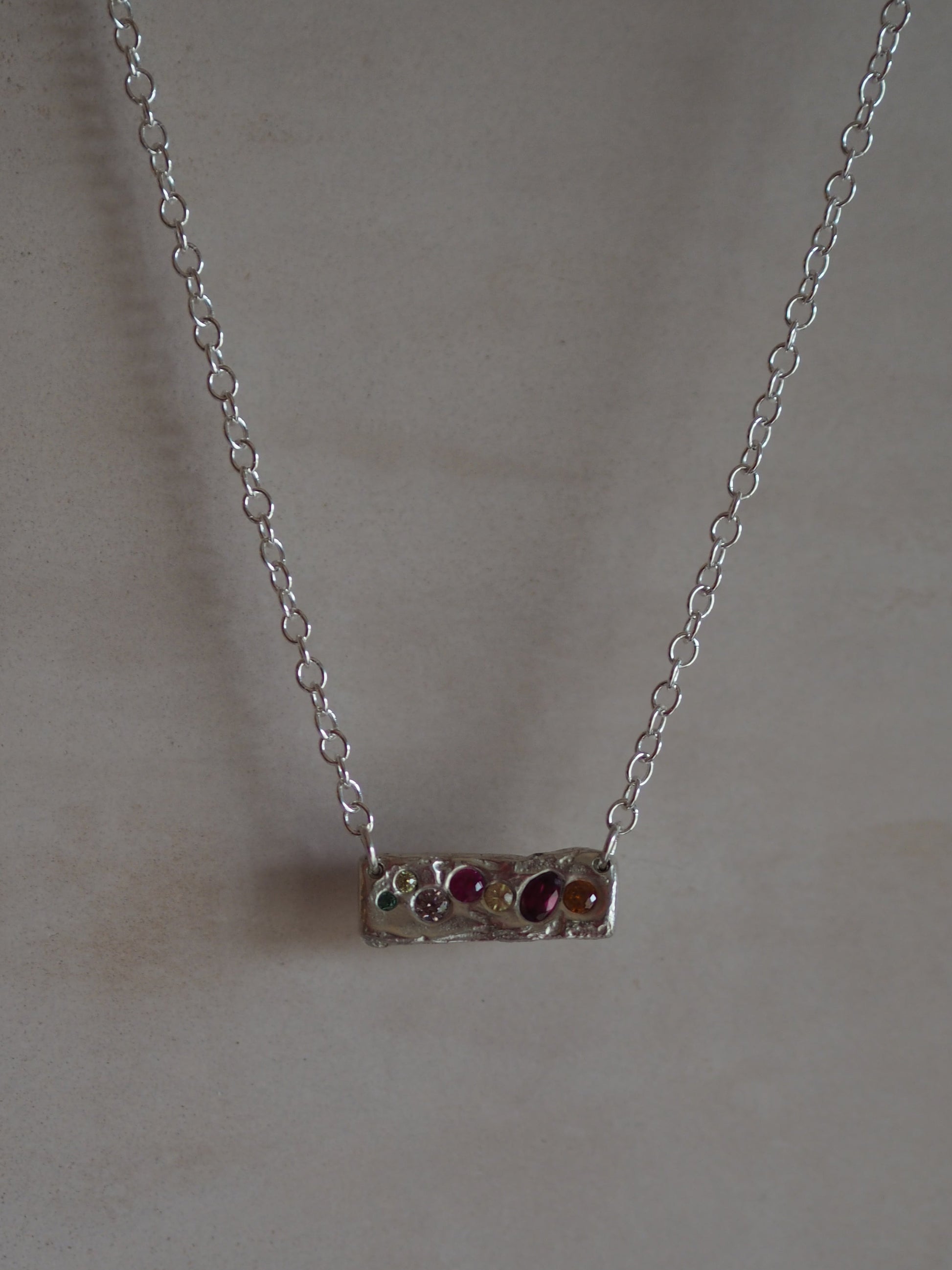 Ready to ship, one off - Sterling silver sand casted pendant with 7 colourful cubic zirconias on a 16” chain with 2” adjustable length (18”)