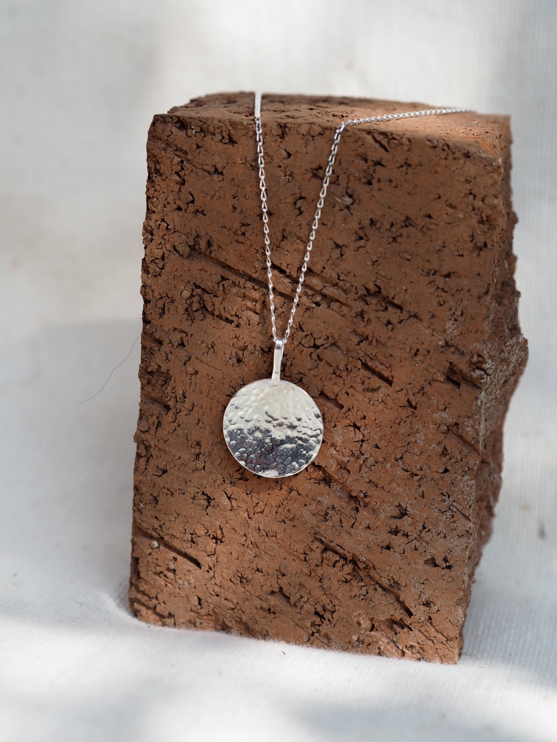 Sterling silver hammered disc pendant