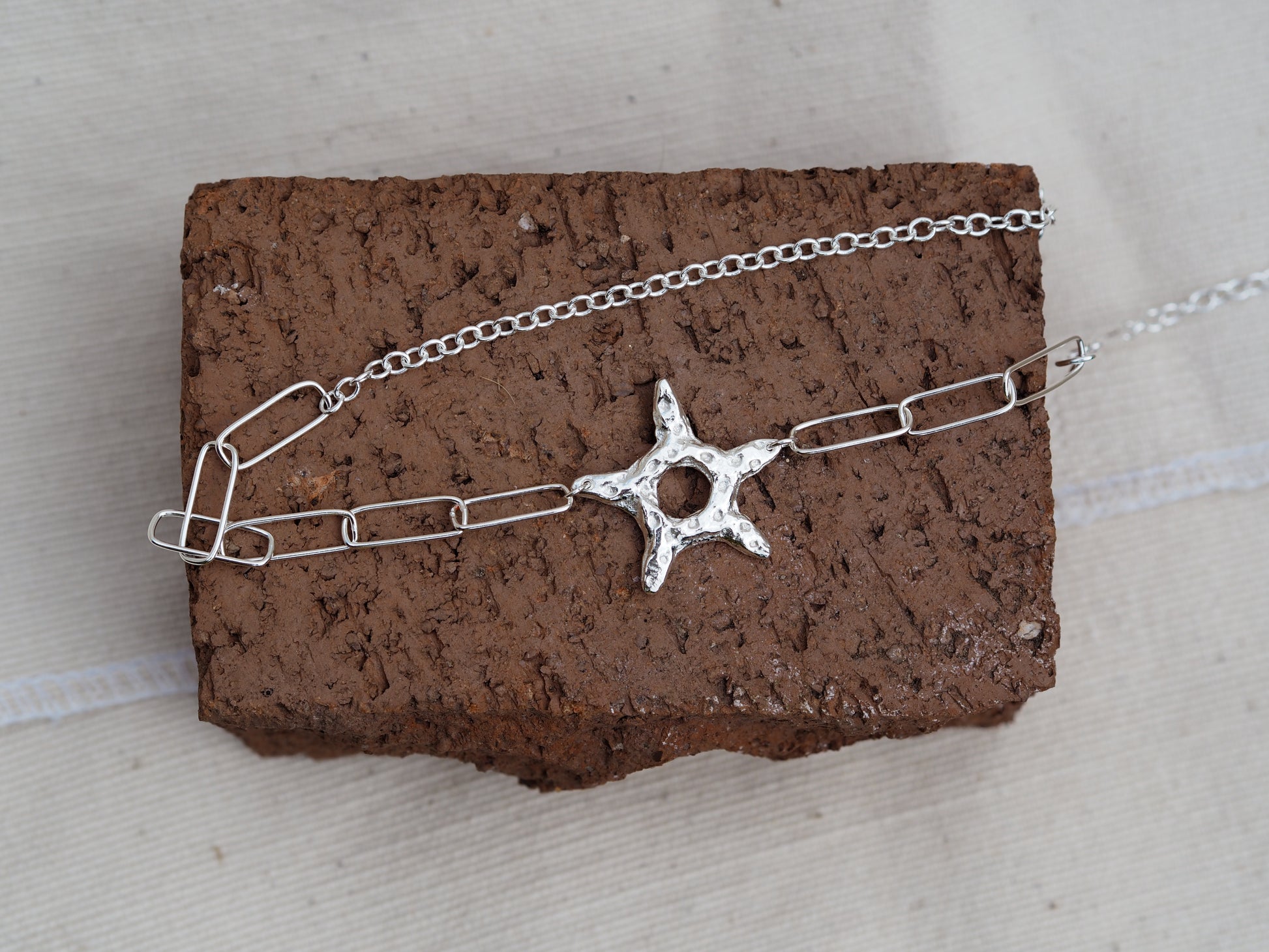 A solid silver sand casted pendant and chain
