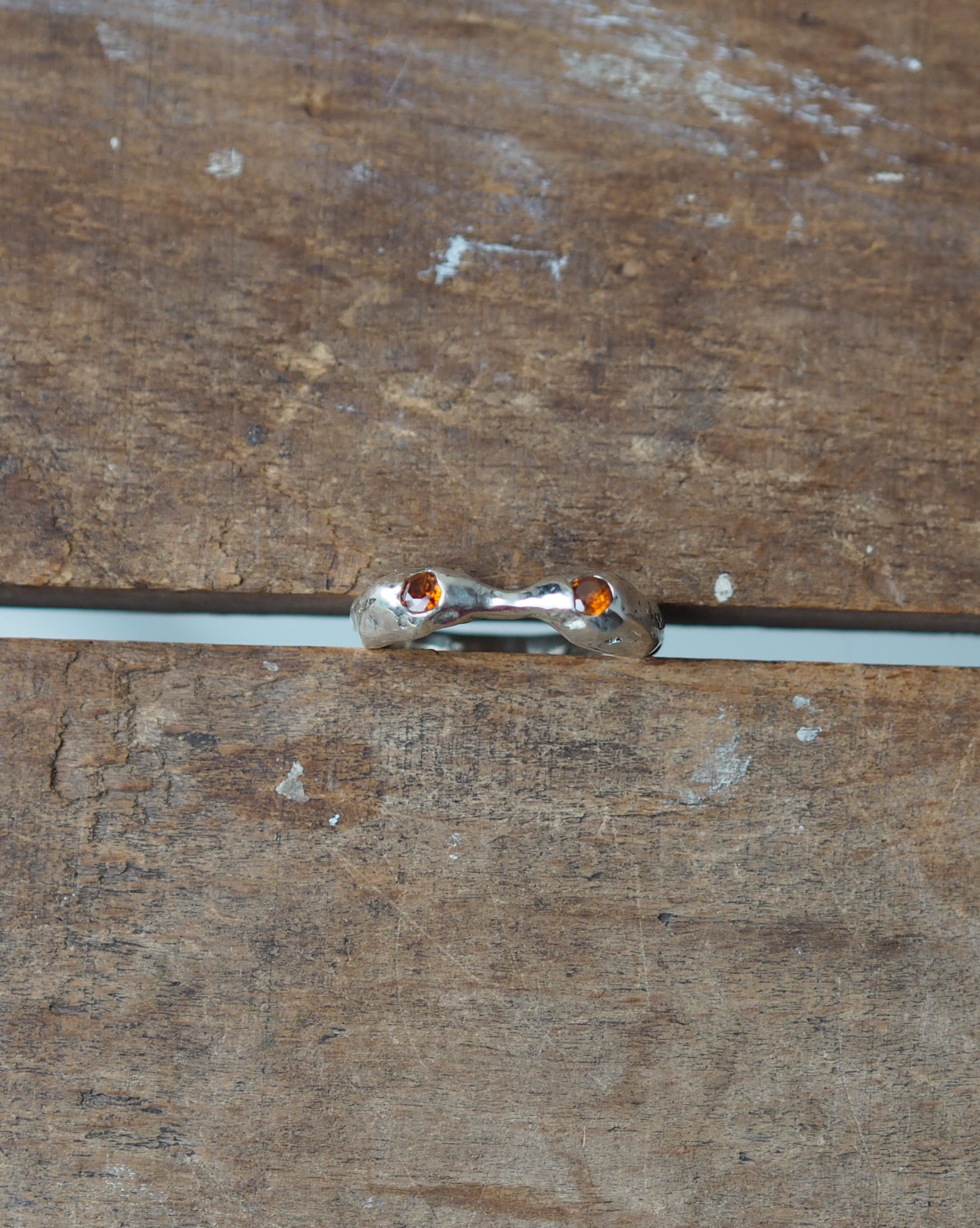 Ready to ship- Sand casted sterling silver ring with 2 cubic zirconias set in place